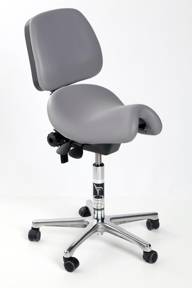 La Silla ergonómica Tipo Montura Bambach Grande, asegura que su usuario se sienta cómodo y seguro en una postura erguida saludable y totalmente soportada. El respaldo se utiliza como punto de apoyo o descanso, la ergonomía la proporciona el sillín.